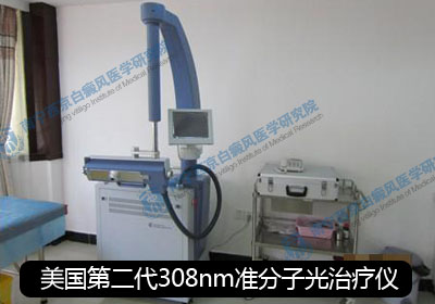 研究表明:单一的308nm波长被认为是紫外光治疗白癜风最佳波长。准分子光可使皮肤黑色素细胞体积增大,树突延长,酪氨酸酶的活性增加,黑素细胞合成的黑色素能力加强;同时对表皮的免疫抑制作用也是治疗白癜风的作用机制之一。308nm准分子光疗法能够有效通过诱导T细胞凋亡(抑制T细胞的活性);刺激毛囊黑色素干细胞的分化和发育;促进黑色素细胞的增生;加强酪氨酸酶的活性;刺激毛囊外根鞘的残余黑色素细胞分裂,增值并移植表皮。